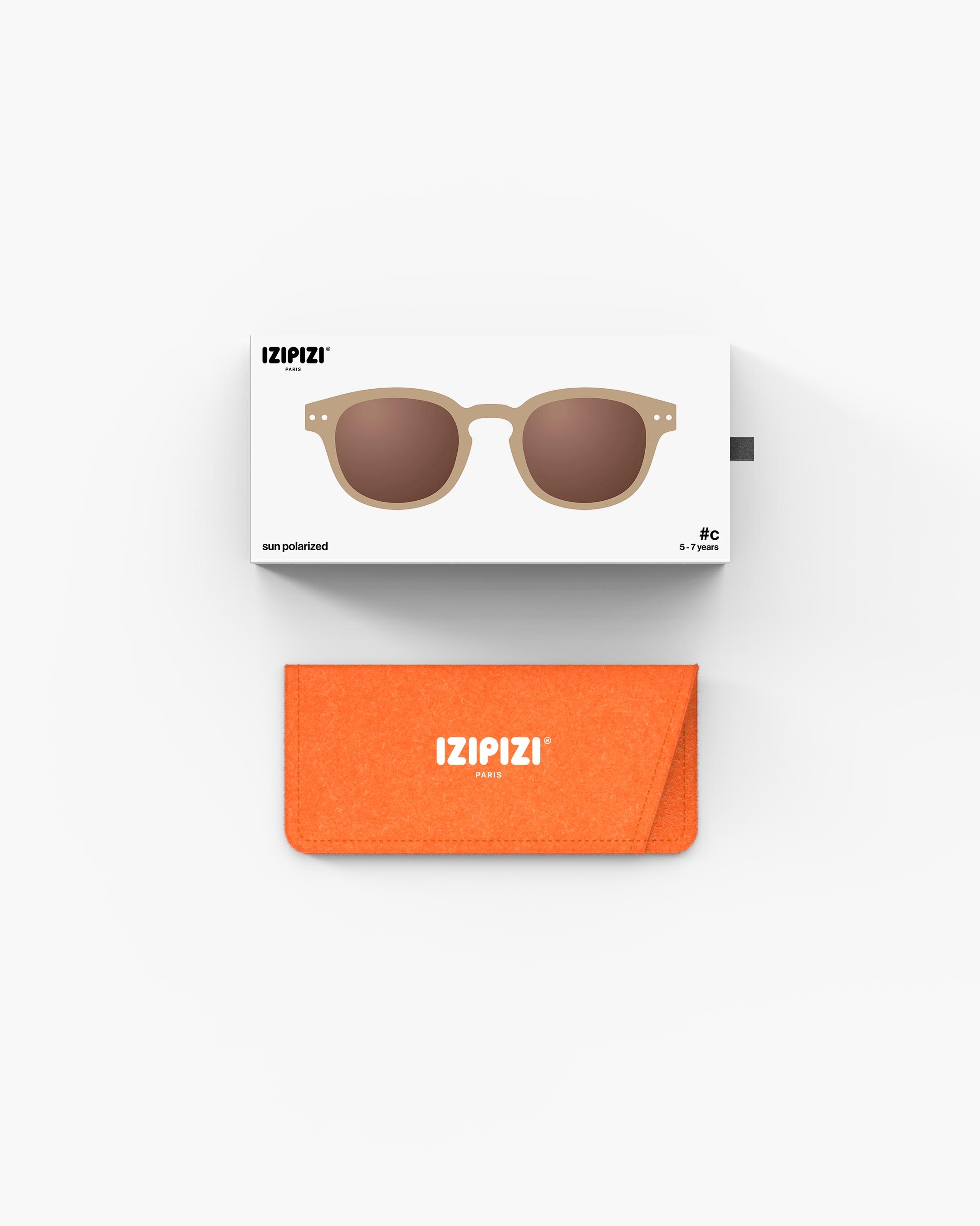 The comforting softness of the Macchiato shade enhances these #c Macchiato sunglasses for children aged 5 to 7. The #c shape, bold and thick with its square design, is brought to life by the milky beige and light brown hue with a glossy finish. The frame is fitted with polarized lenses for optimal UV protection.
