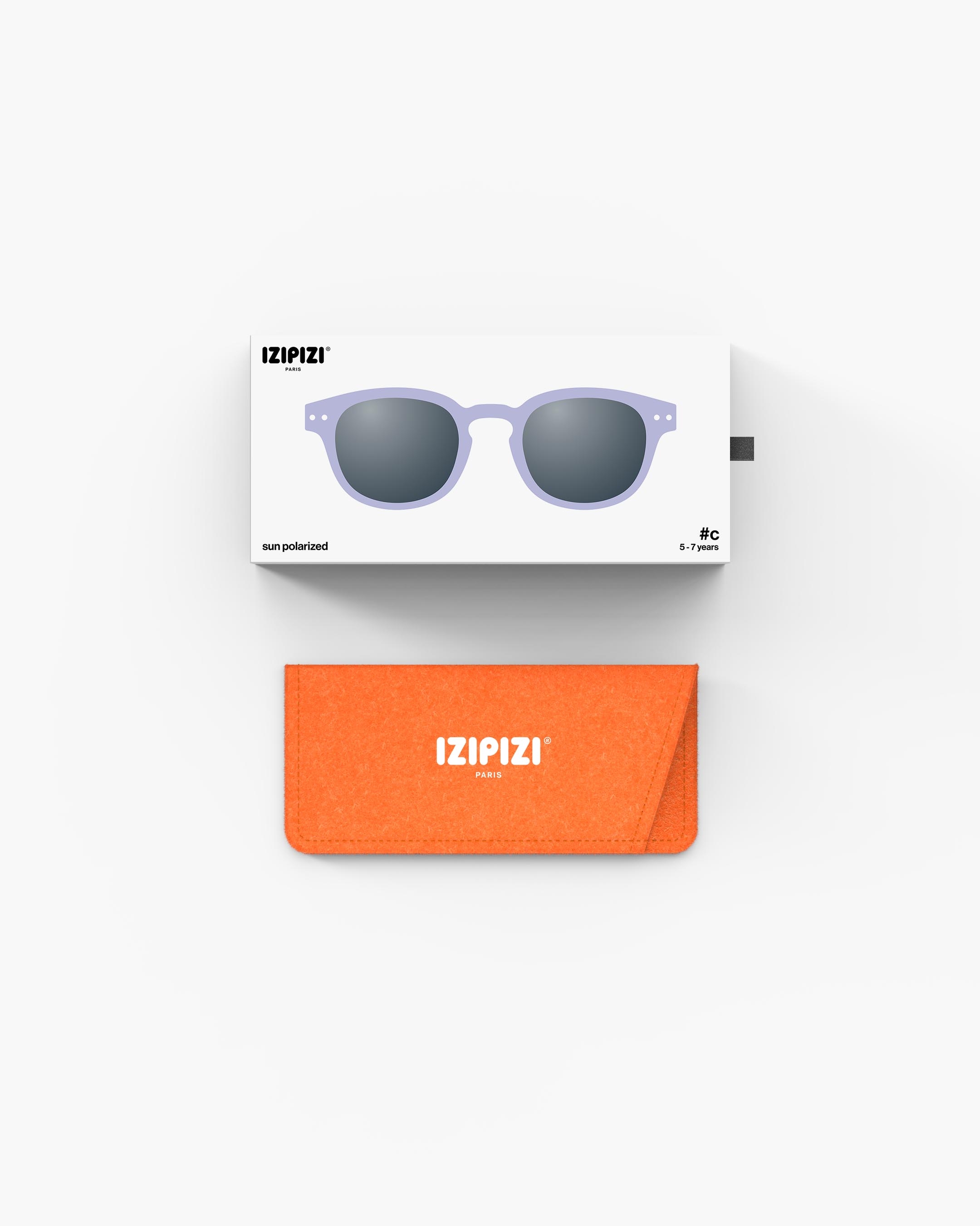 The #c Lavender kids’ sunglasses for ages 5 to 7 combine character with delicacy. The bold, thick square shape is elevated by the Lavender shade, a delicate and luminous violet enhanced by a glossy finish. The frame is fitted with polarized lenses for maximum UV protection.