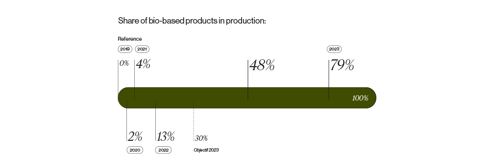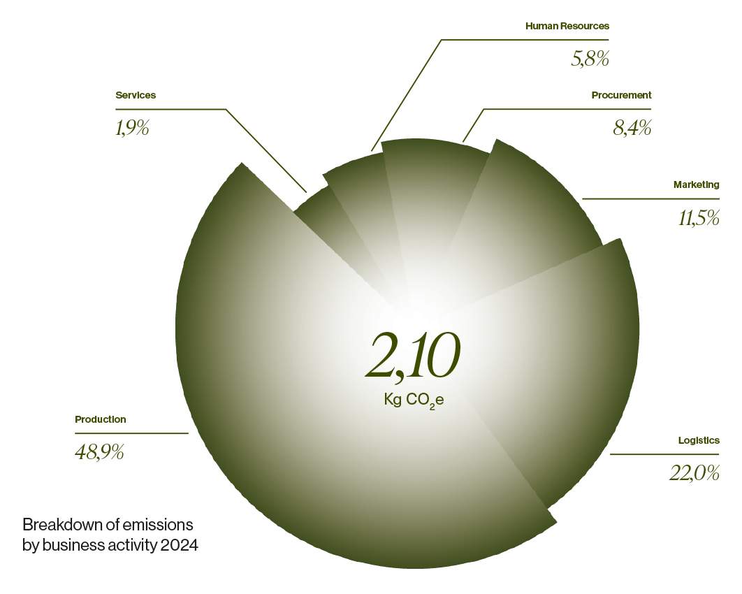 This comprehensive understanding of our impact by business area allows us to define concrete action plans to minimize our carbon footprint as much as possible. Since 2019, transportation and production have been our major sources of emissions, although they have been significantly reduced.