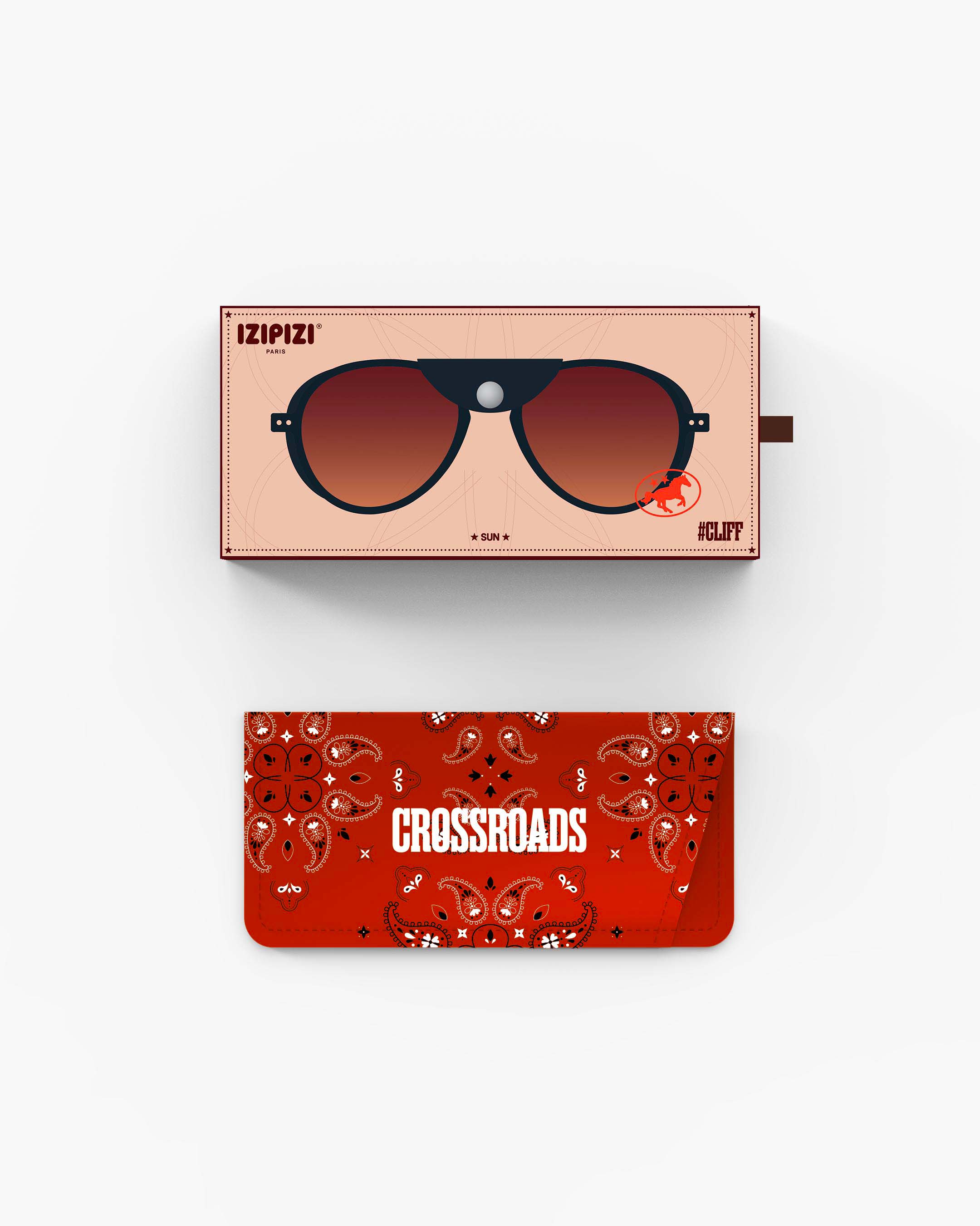 Las gafas de sol #CLIFF Black Road logran el equilibrio perfecto entre una montura negra mate y un acabado brillante. Evocan los grandes espacios y la libertad de viajar. La silueta aviador reinventada gana en elegancia, mientras que las protecciones laterales extraíbles con efecto ante refuerzan un estilo audaz y aventurero.
