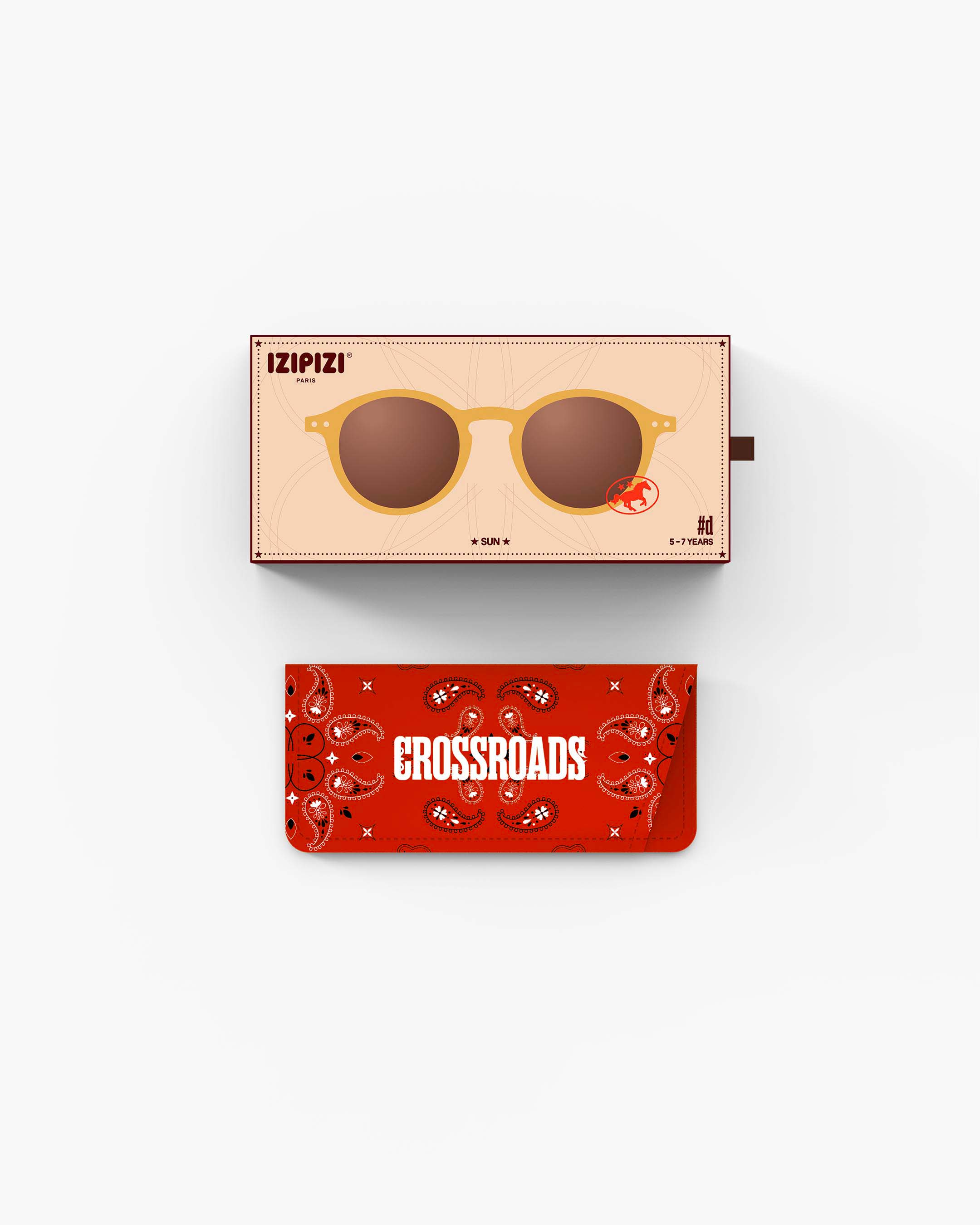 Die #d Golden Canyon Kinder-Sonnenbrille präsentiert sich mit einer glänzenden Fassung in einem warmen Sandton, kombiniert mit braunen Gläsern. Ihre runde, zeitlose Form vereint Stil und Komfort und schützt die Augen von Kindern im Alter von 5 bis 7 Jahren bei Ausflügen und Familienreisen.
