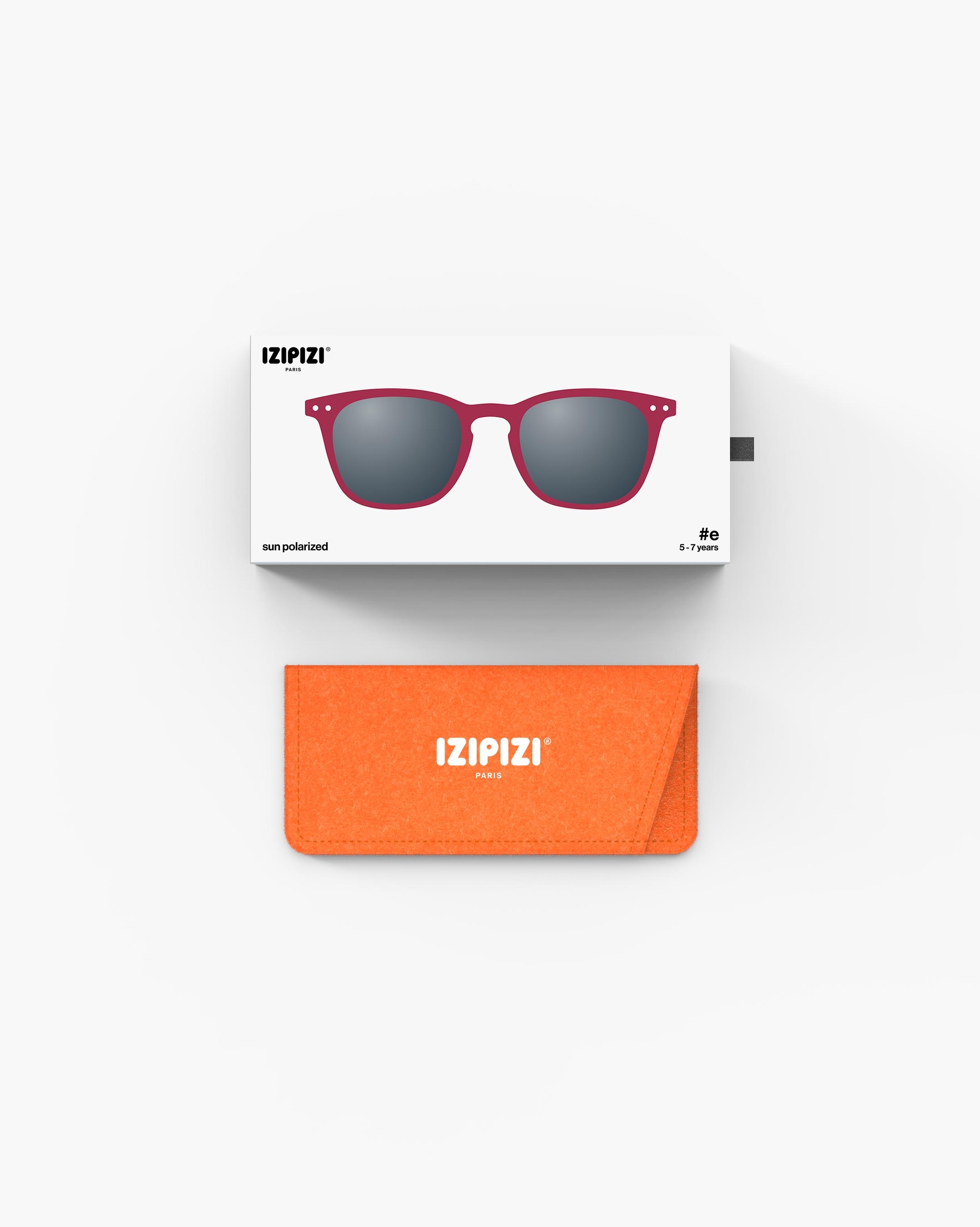 The #e Cranberry kids’ sunglasses give children aged 5 to 7 a bold, character-filled look. They stand out with their sleek rectangular shape and intense Cranberry shade with a glossy finish. The thin, lightweight frame is fitted with polarized lenses for maximum UV protection.